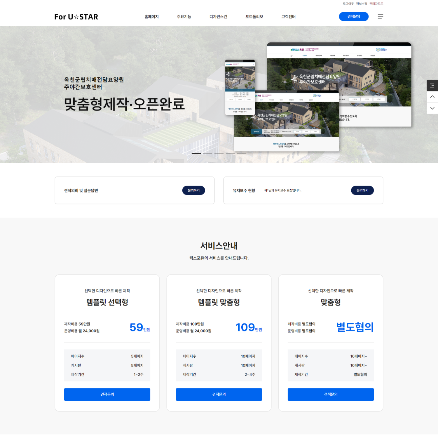 안녕하세요, 복지관 및 요양원 홈페이지 제작 전문 업체 포유스타입니다.